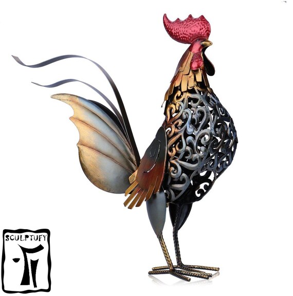 Metal Figurine Iron Rooster Home Decor Colorful Figurine Etsy