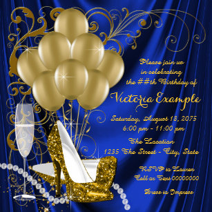 Princess Quinceanera Gold Royal Blue Silver Party Invitation