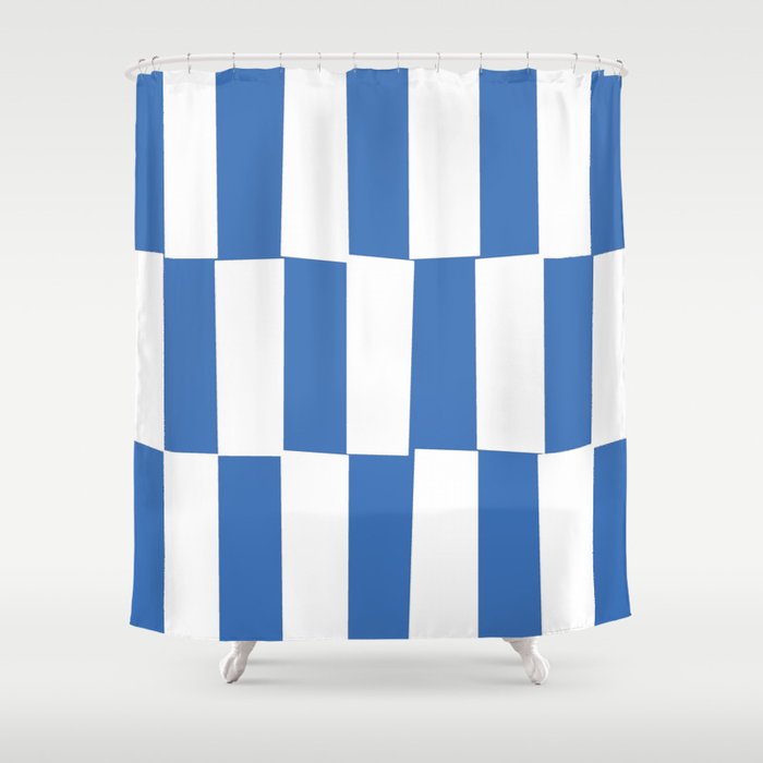 Modern Royal Blue And White Trendy Checker Pattern Shower Curtain