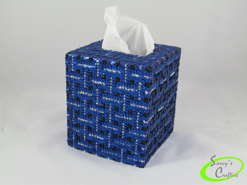 Tissue Box Cover Royal Blue And Silver Sequins Lattice Etsy