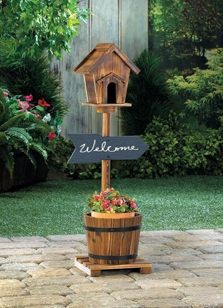 Amazon Com Planters Garden Decor Welcome Sign Rustic Birdhouse