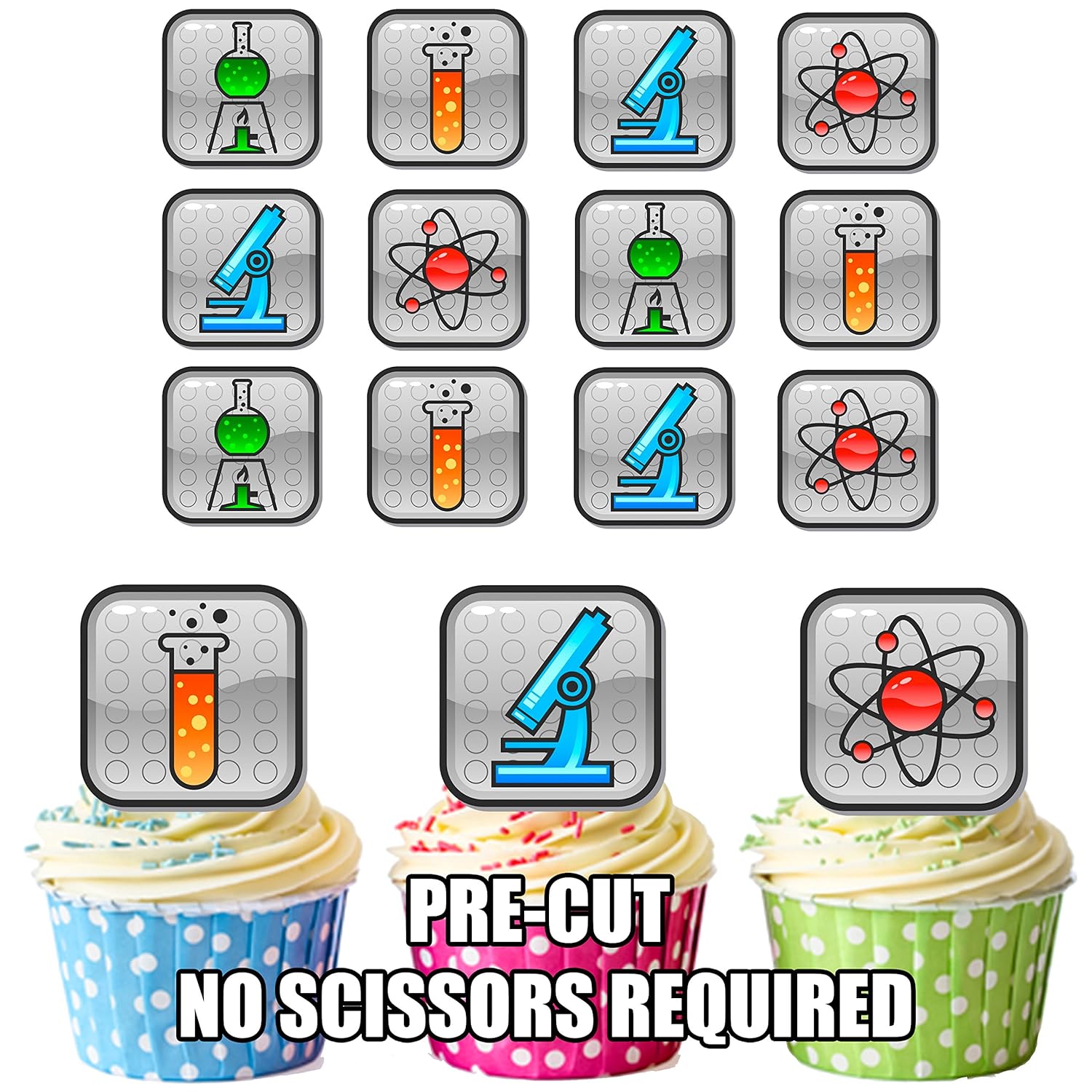 Precut Science Party Themed Edible Cupcake Toppers Birthday Cake