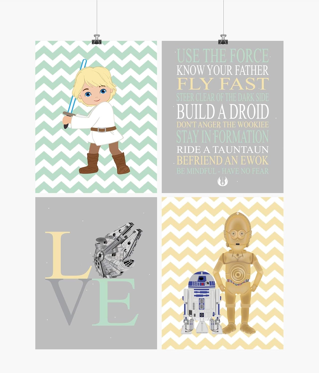 Amazon Com Star Wars Nursery Decor Set Of 4 Art Prints Jedi