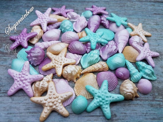 50 Edible Sugar Cake Decorations Shells Sea Stars Cake Cupcake Etsy