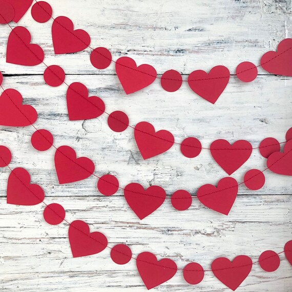 Red Heart Garland Valentines Gift Valentines Day Decor Etsy