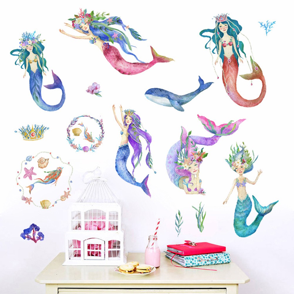 Cartoon Mermaid Princess Wall Stickers Wallpaper Diy Vinyl Home