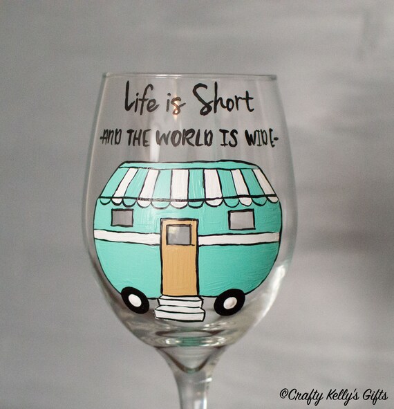 Hand Painted Camper Wine Glass Painted Wine Glass Traveling Etsy
