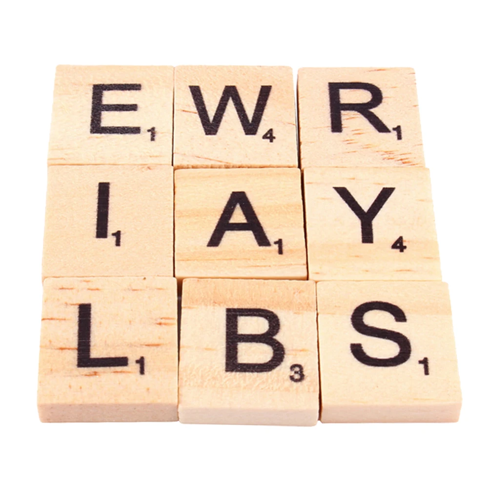 100pcs New Wood Color Wooden Alphabet Scrabble Tiles Black Letters