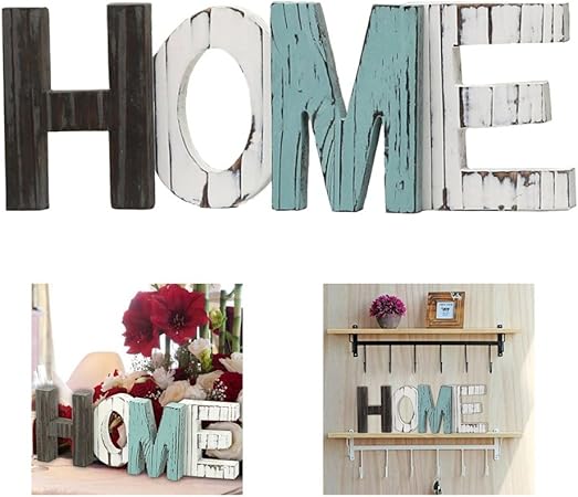 Home Freestanding Wooden Letters Rustic Vintage Whitewash Art