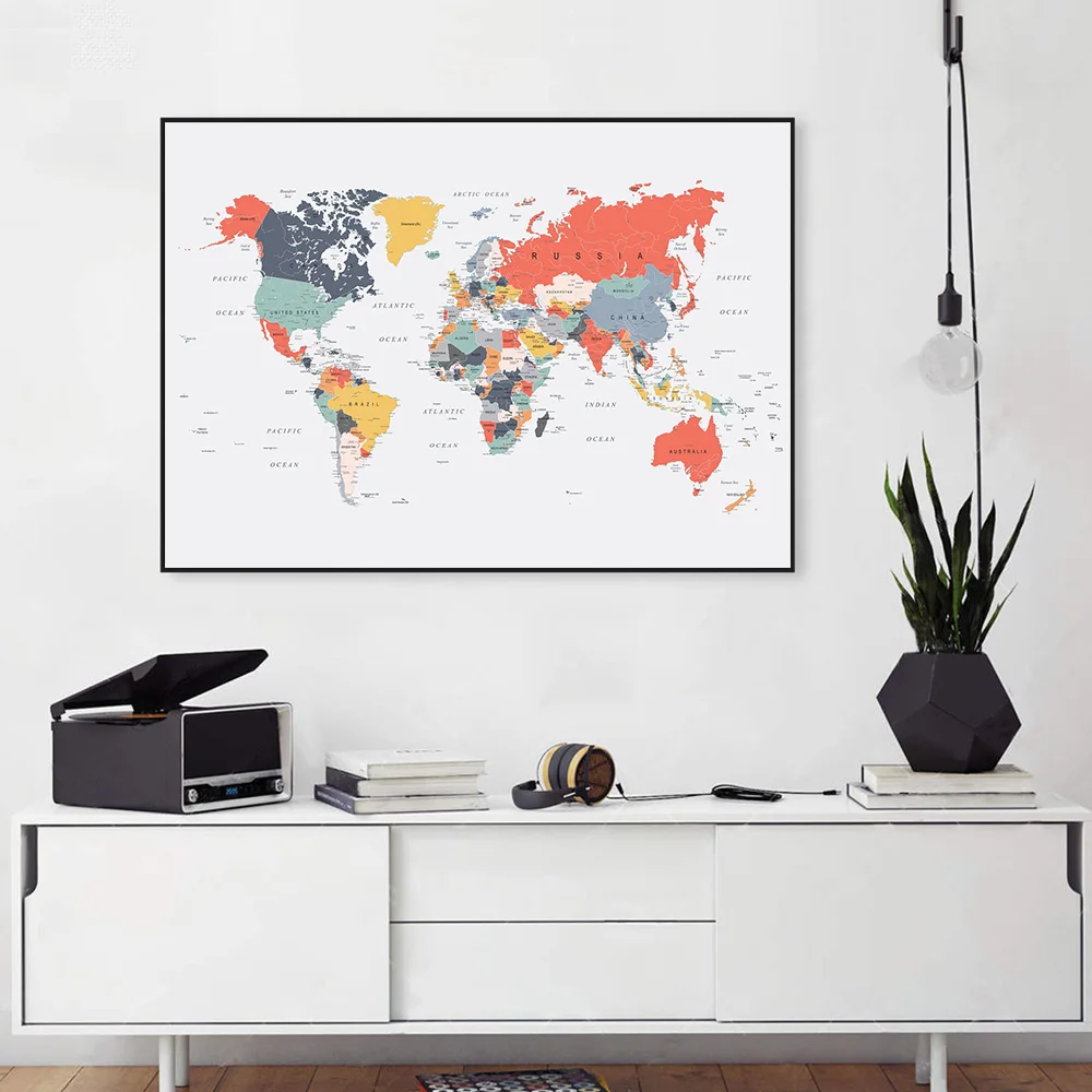 Watercolor World Map Wall Art Poster Colorful Map Canvas Painting
