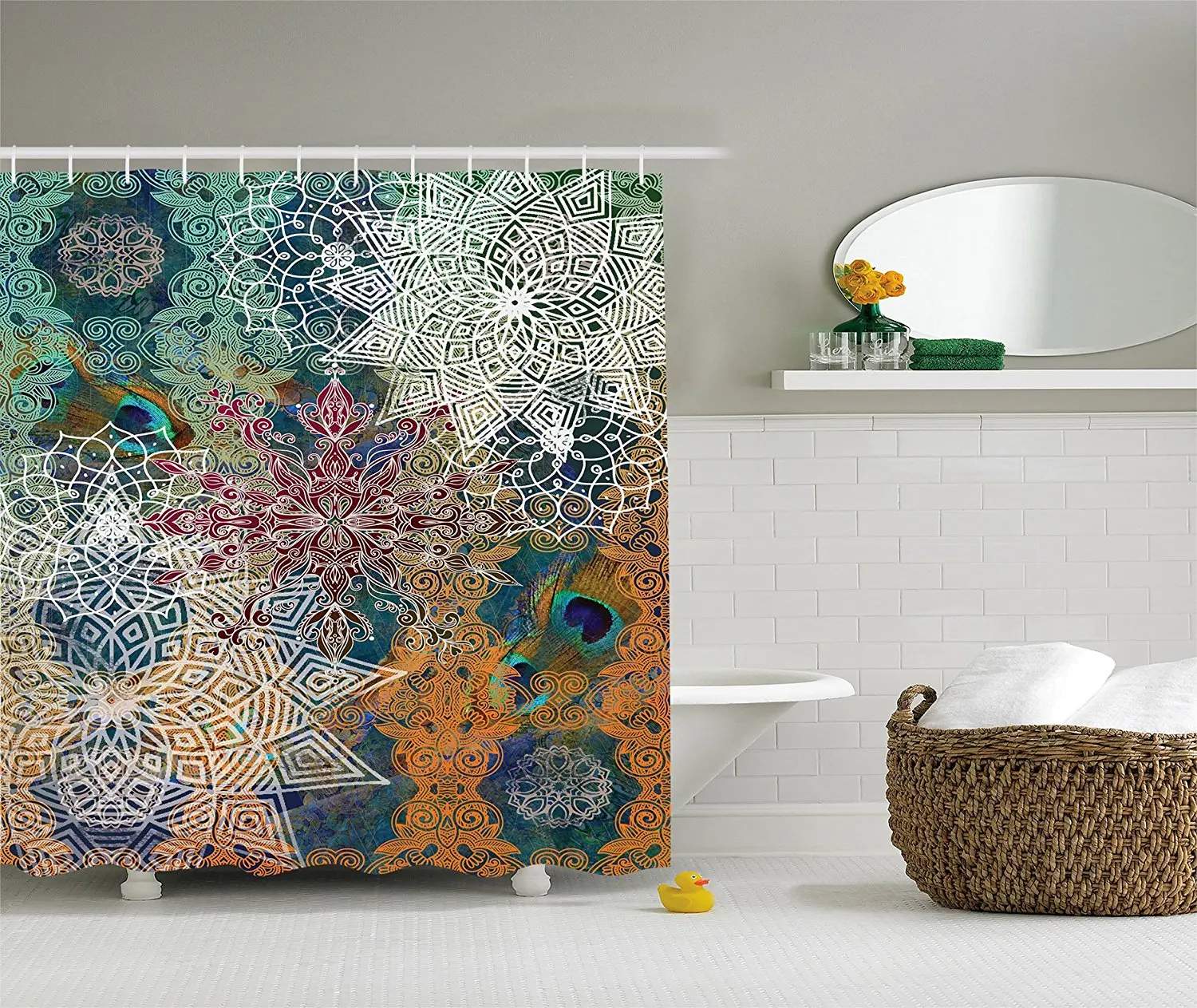 Bohemian Shower Curtain Boho Yoga Decor Natural Peacock Feather