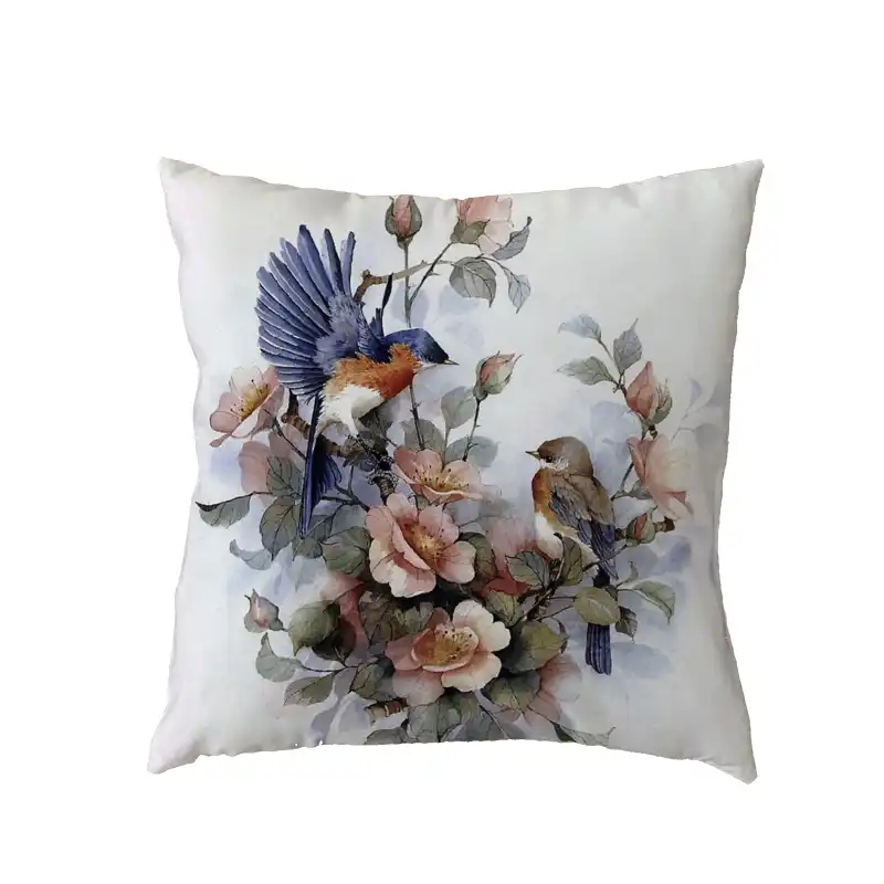 Colored Flowers Hummingbird White Cushion Cover Vintage Pink Rose