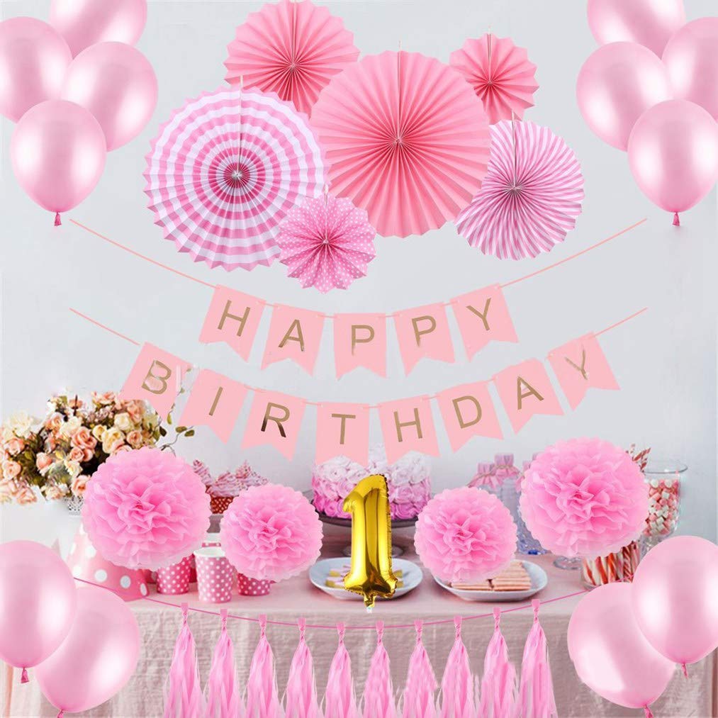 1st Birthday Decorations Girl Baby Shower Pink Balloons One Year