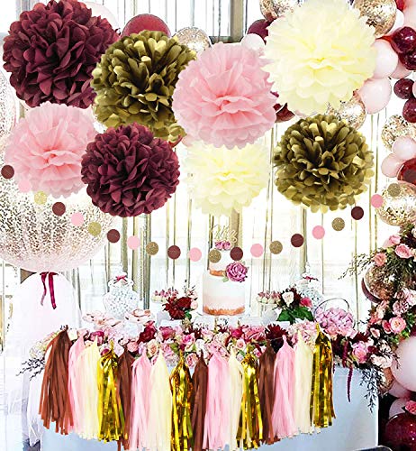 Fall Birthday Party Decorations Burgundy Champagne Mint Tissue Pom