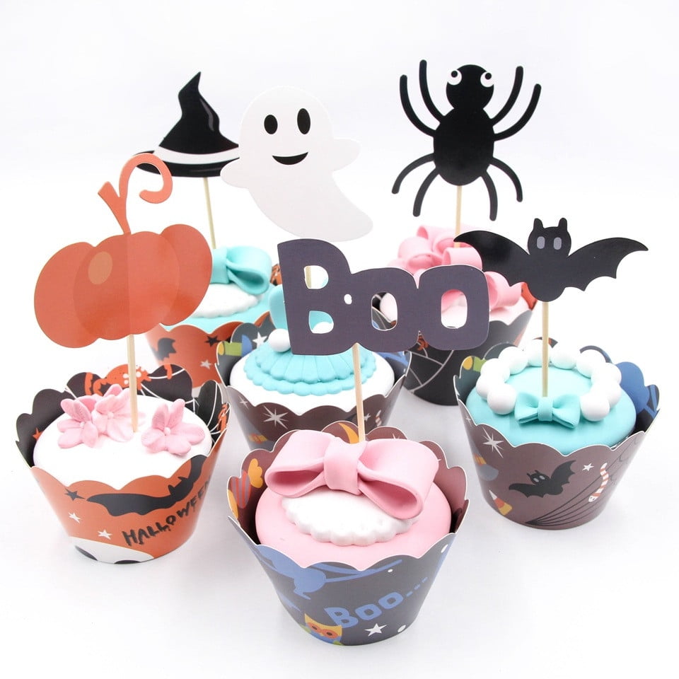 12pcs Halloween Bat Pumpkin Spider Hatcard Cake Decoration