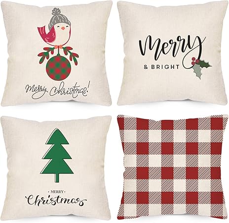 4 Pack Christmas Decorations Pillow Covers Merry Xmas Series Couch