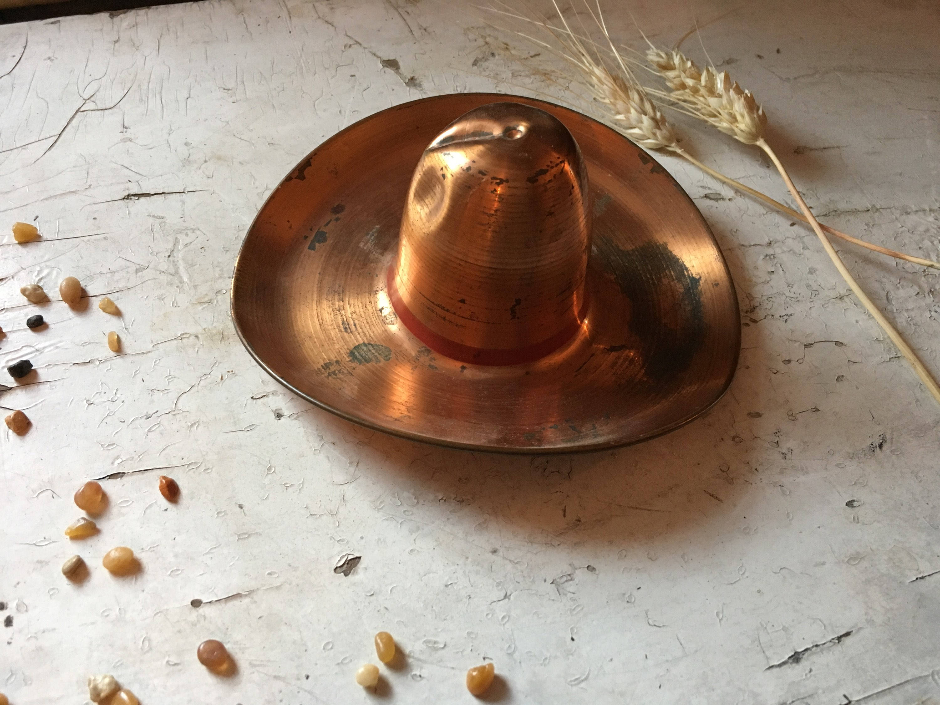 Small Copper Cowboy Hat Trinket Ring Jewelry Dish Copper