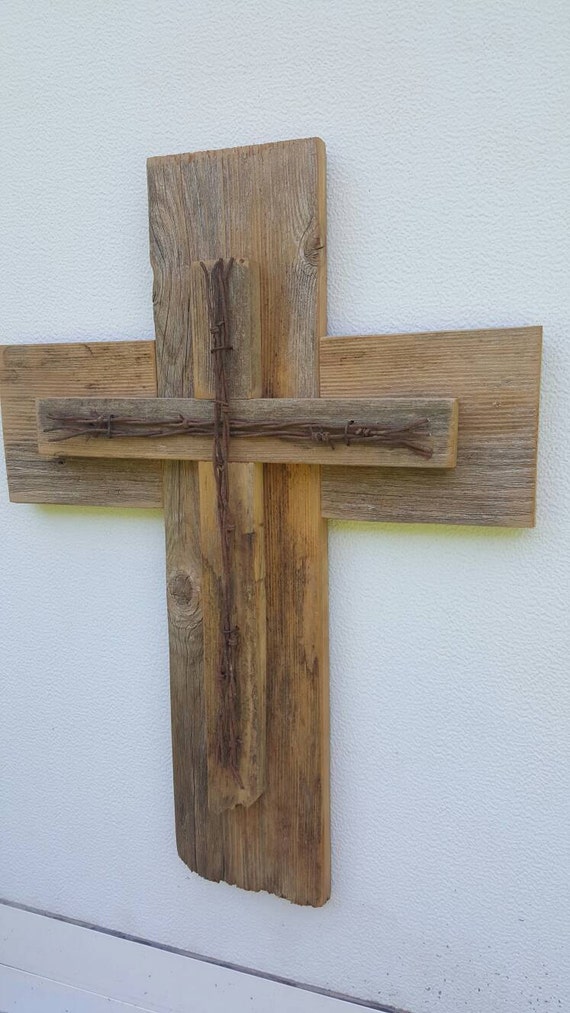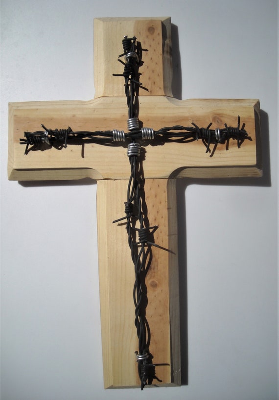 Barbed Wire Rustic Cedar Wood Wall Cross Decor Barbed Wire Etsy