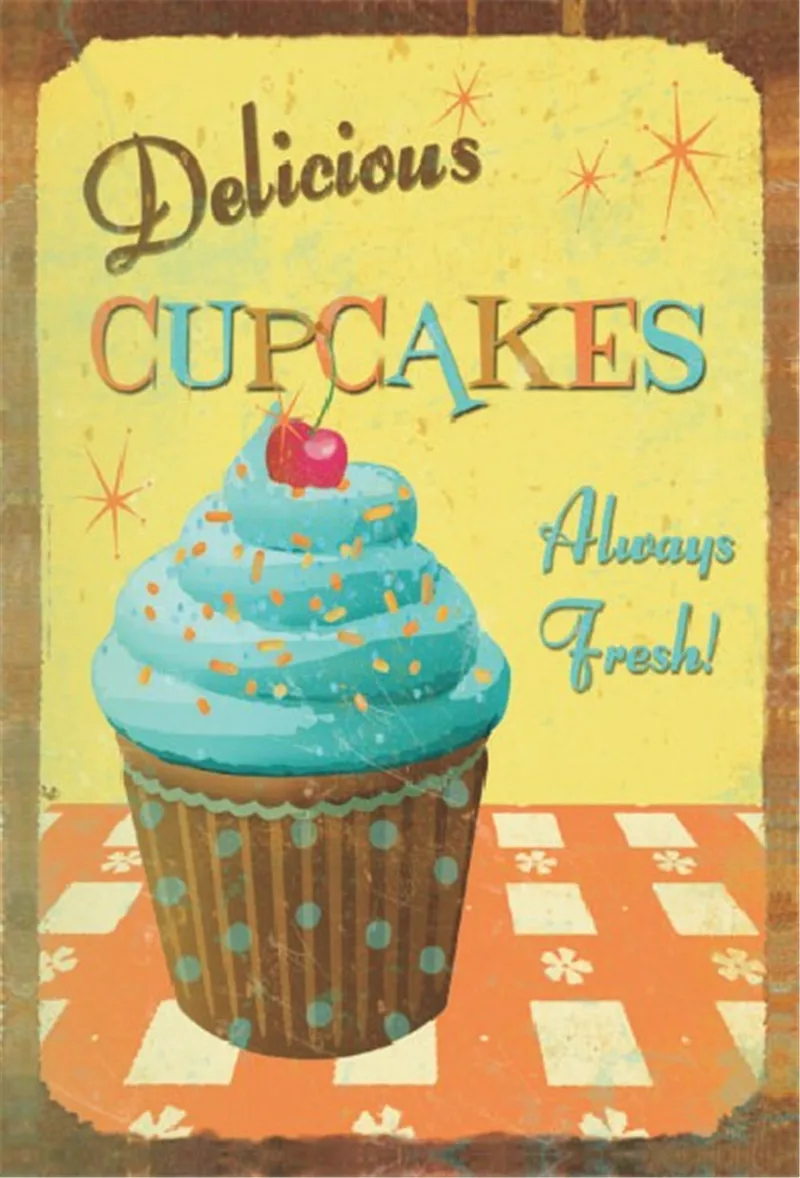 Decorated Cupcakes Bakery Wall Decal Set Vintage Style Home Decor
