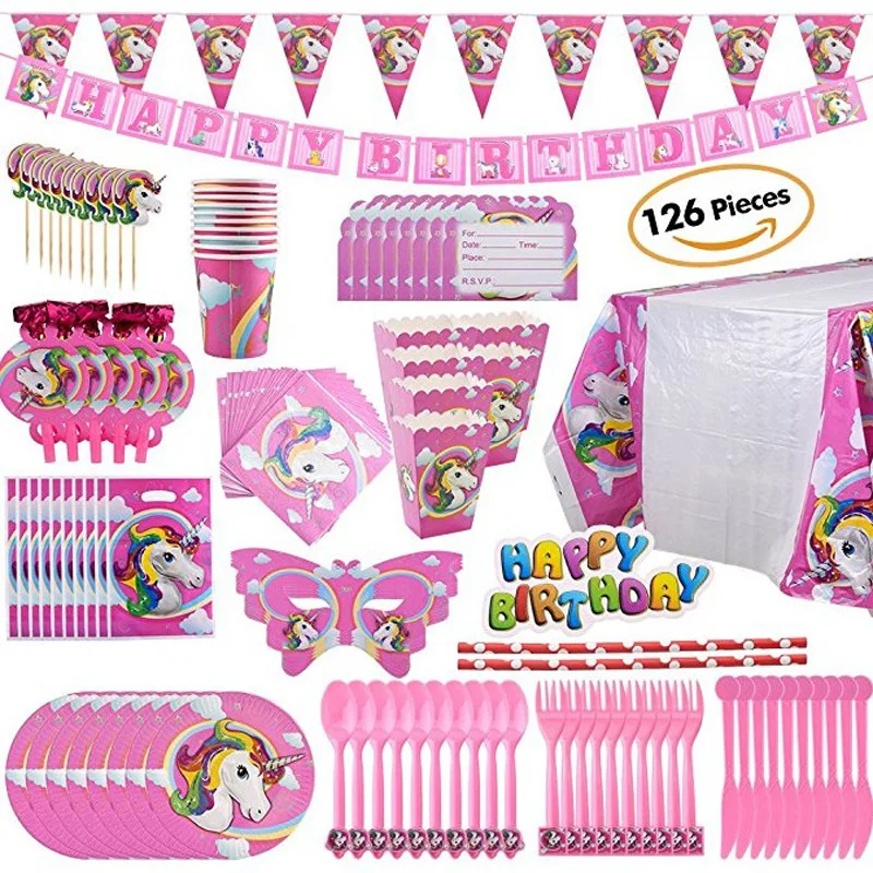 Unicorn Birthday Party Decorations Disposable Tableware Set