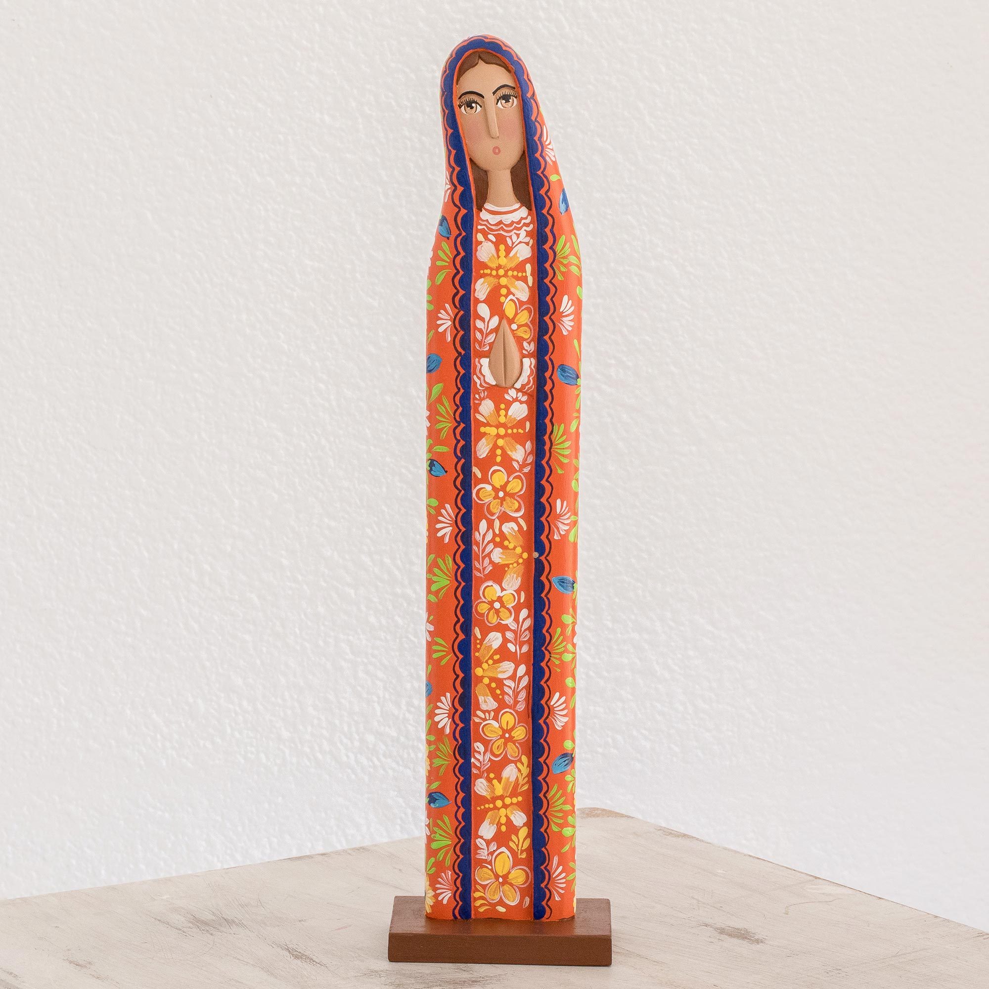 Multicolored Floral Wood Mother Mary Decorative Accent Model Of