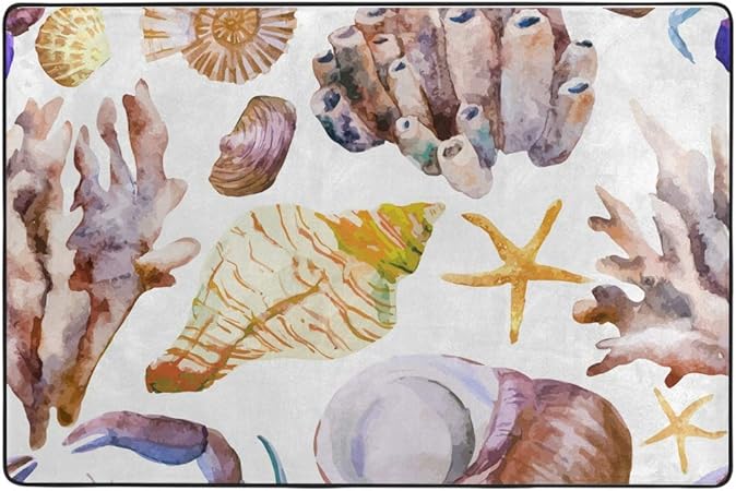 Amazon Com S Husky Large Area Rug Watercolor Shell Conch Coral
