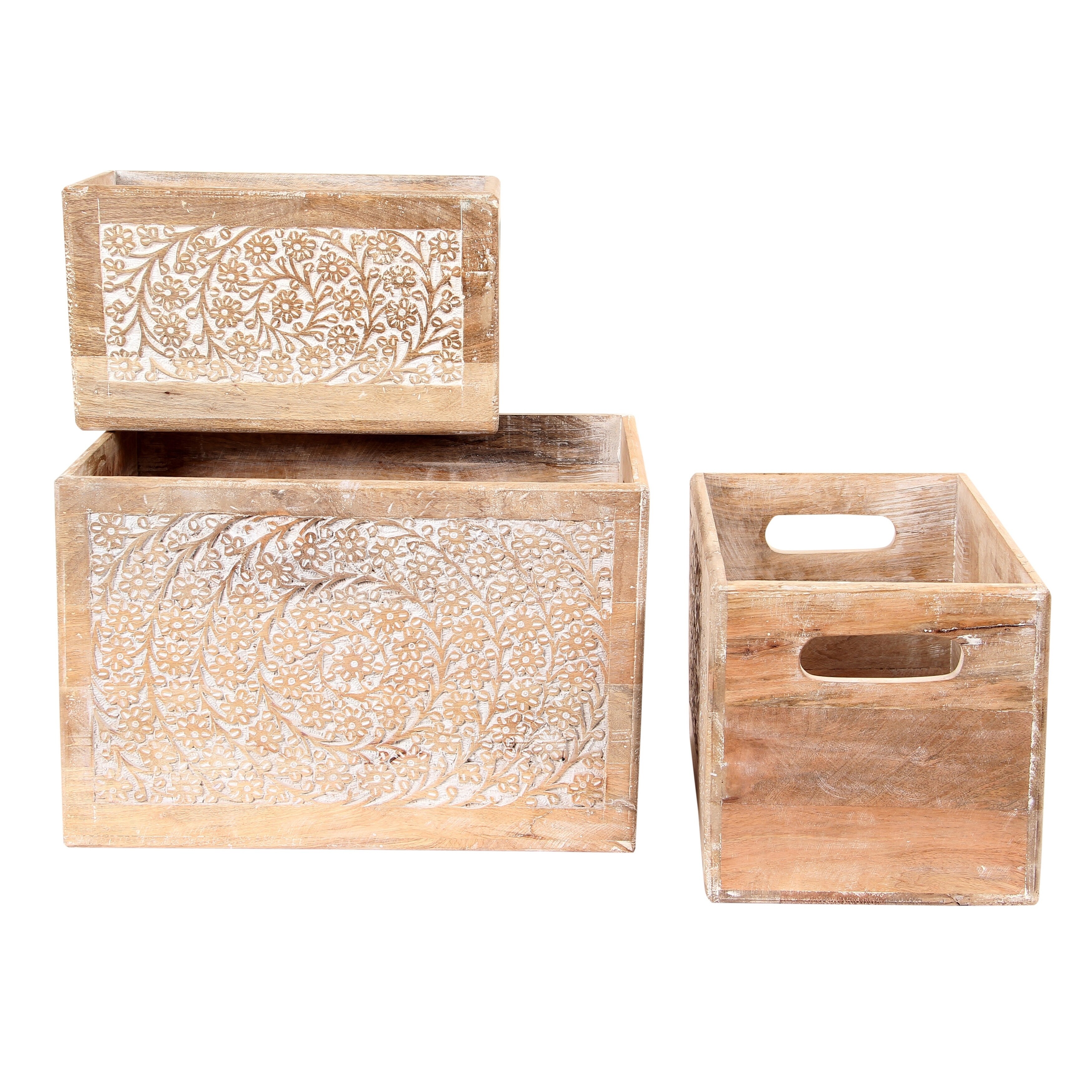 Litton Lane Farmhouse Mango Wood Crates In Light Brown Set Of 3