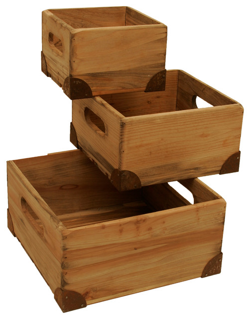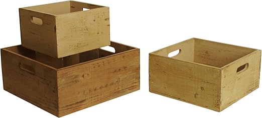 Wald Imports Natural Pine Wood Decorative Crates Boxes Set Of 3