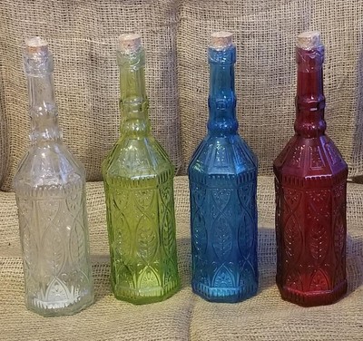 Decorative Glass Bottles With Corks Blue Red Green Clear 12