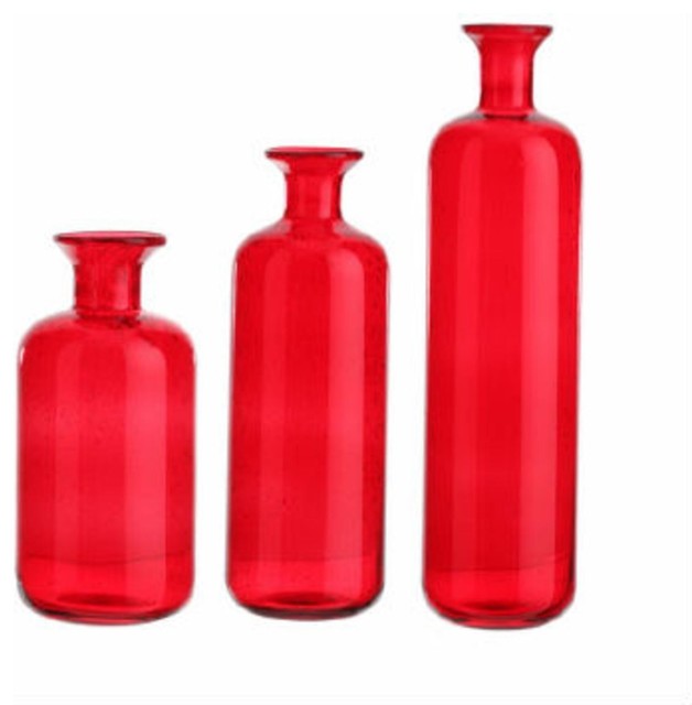 Translucent Candy Apple Red Decorative Glass Bottles 3 Piece Set