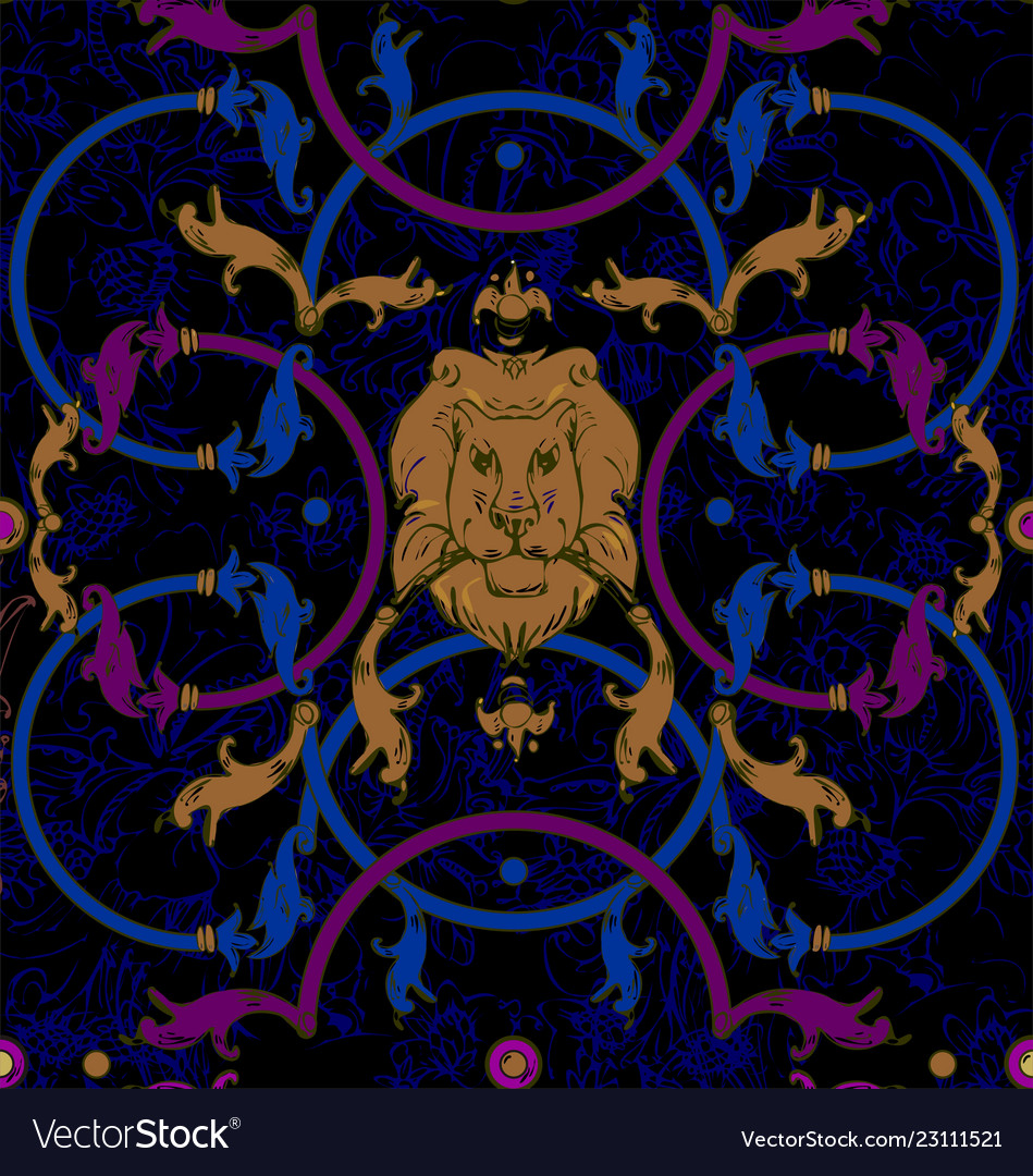 Decorative Lattice With A Lion In Classic Style Vector Image