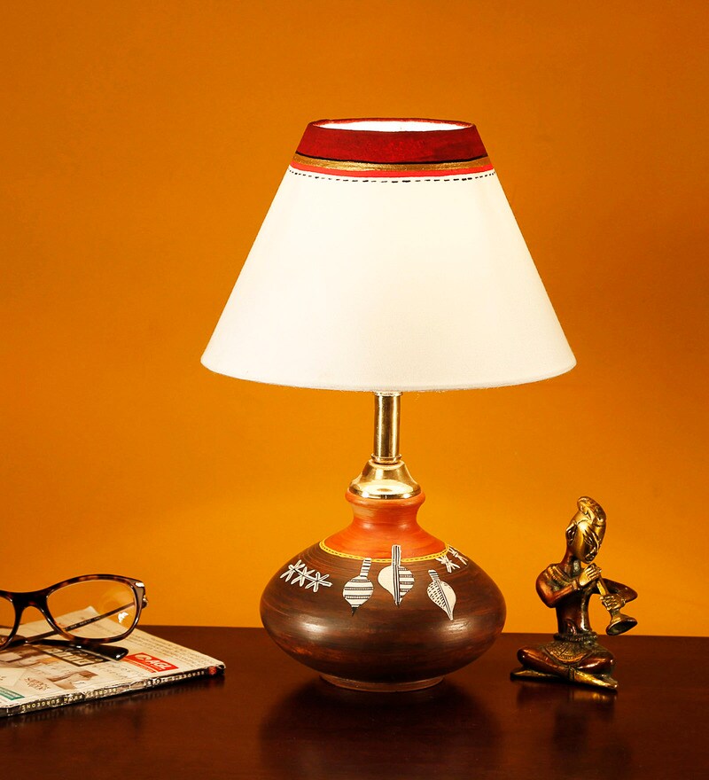 Terracotta White Black Decorative Table Lamp Aakriti Art Creations