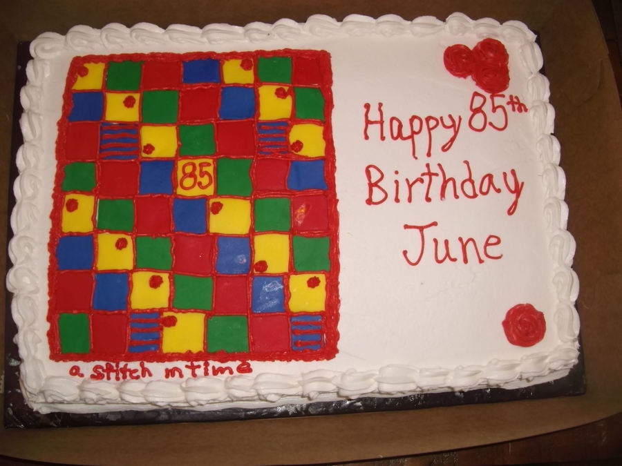 Lemon Cake With Decorator Frosting Decorated With A Fondant Quilt