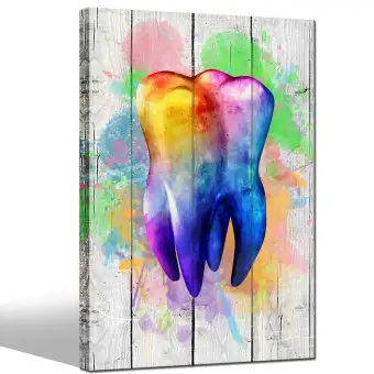 Contemporary Art Prints Colorful Tooth With Wood Background