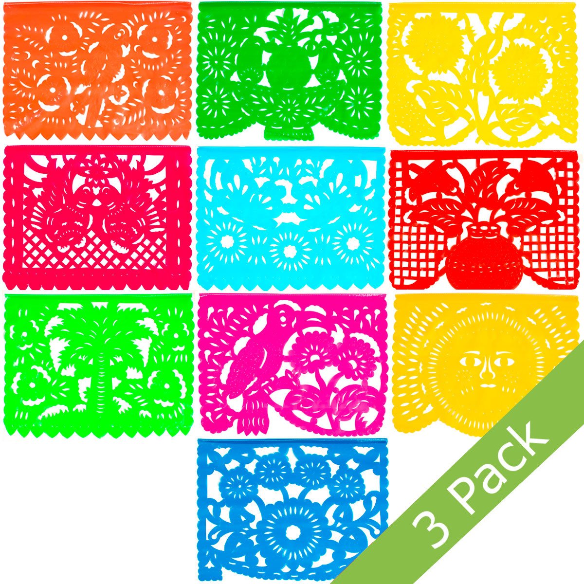 3 Pack Large Plastic Papel Picado Banner Mexican Fiesta