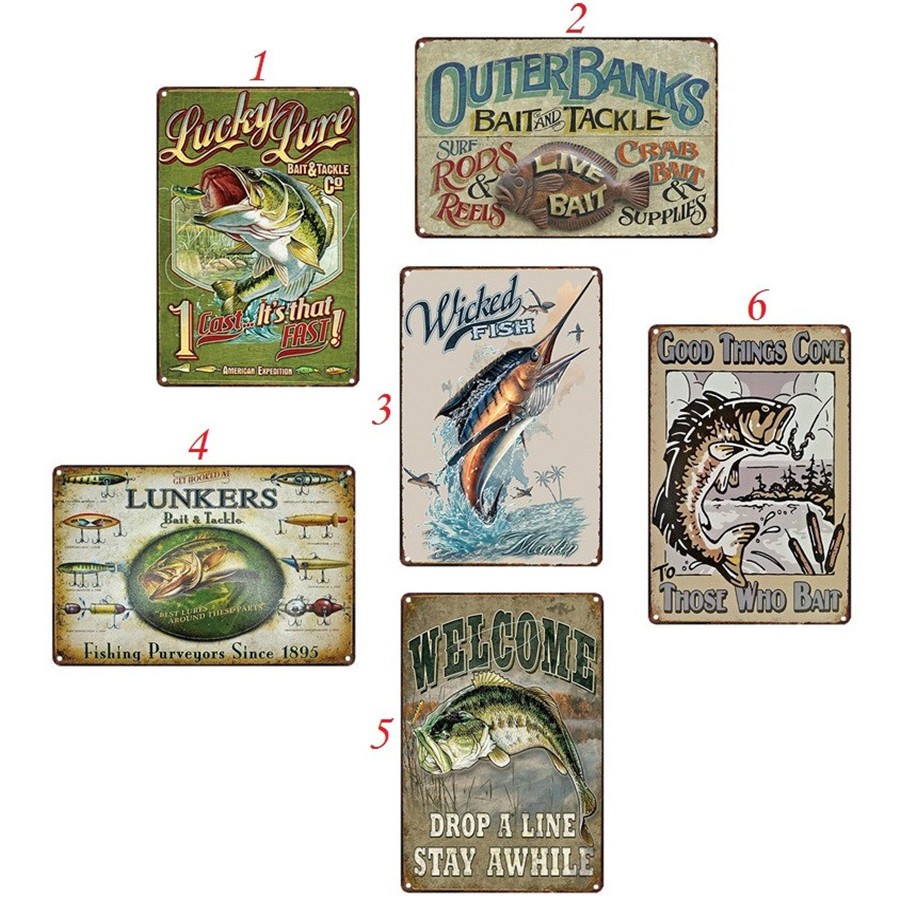 Fish And Fishing Vintage Metal Tin Sign Bar Pub Home Decor Wall