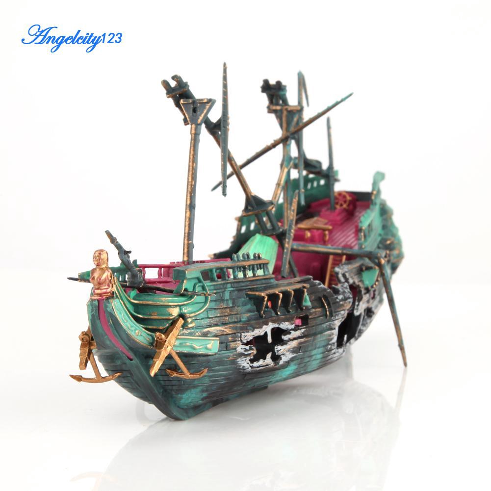 Angღaquarium Ornament Ship Fish Tank Decor Sunk Wreck Boat