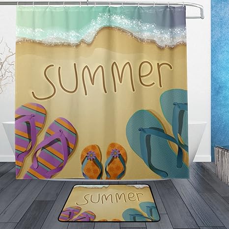 Amazon Com Alaza Summer Flip Flop Shower Curtains Set 72 X72