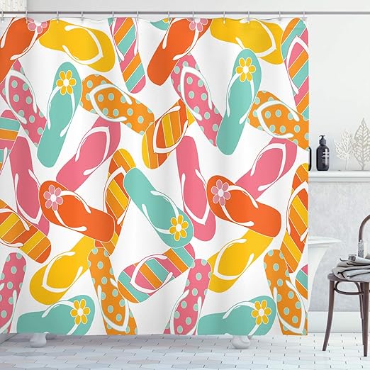 Flip Flop Shower Curtain Fabric Bathroom Decor Set With Hooks 4