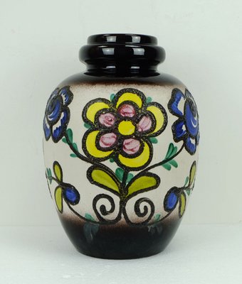 Fat Lava Floor Vase With Flower Decor From Scheurich 1960s For