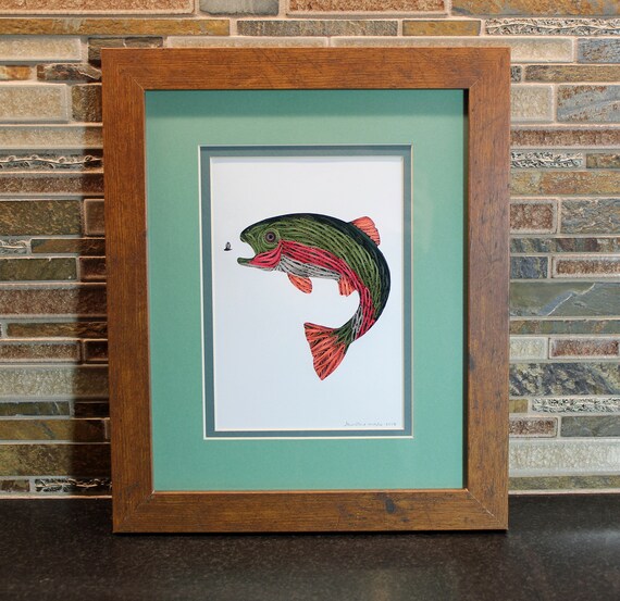 Rainbow Trout Wall Art Fishing Decor Paper Art Fly Fishing Etsy