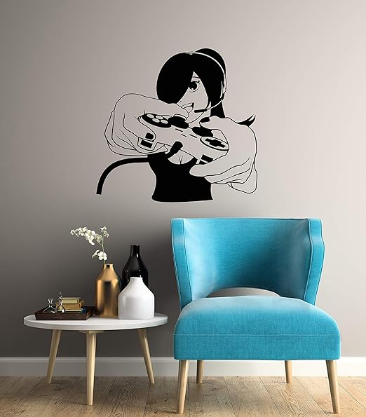 Amazon Com Gamer Girl Vinyl Wall Decal Video Games Joystick