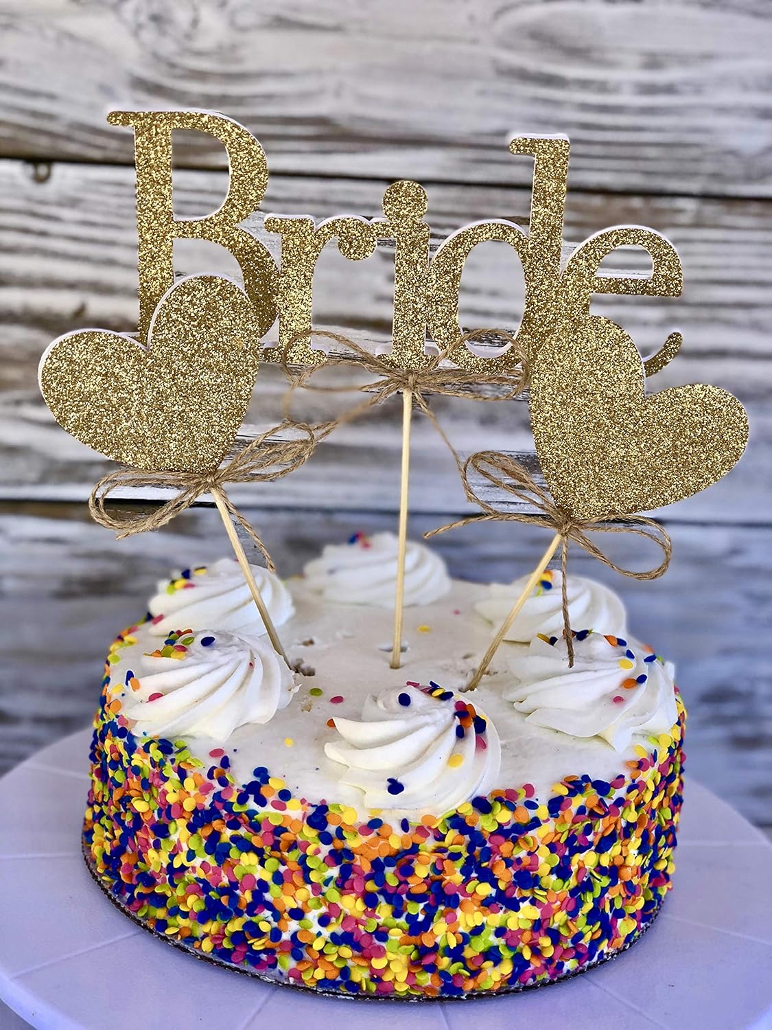 Bride To Be Cake Topper With Heart Gold Glitter Bridal Shower