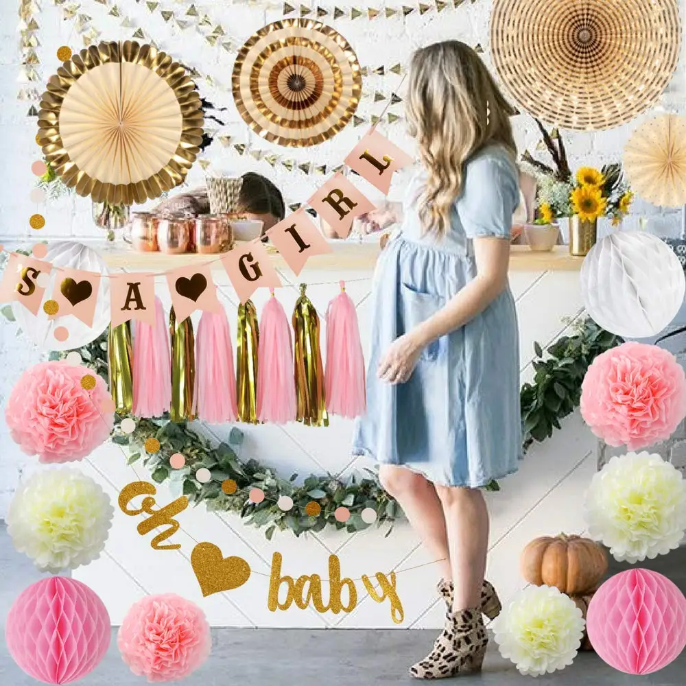 Pink and gold party decorations 50 pc pink party supplies paper pom poms paper lanterns glitter garlands balloons confetti birthday party princess party ballerina party bachelorette party. Paper triangle flag bunting pennant banner for birthday holiday wedding anniversary bridal shower hen party theme party supplies decorationsglittermetallic rose gold 50 out of 5 stars 6. Four year old birthday decorations gold party decorations summer party decorations outdoor birthday decorations outdoor graduation decorations say whatever your heart desires with these gold foil letter balloons.