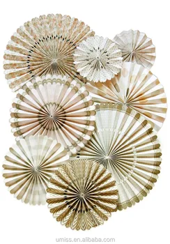 Umiss 8 Gold Glitter Vintage Paper Rosettes Fan Party Decorations