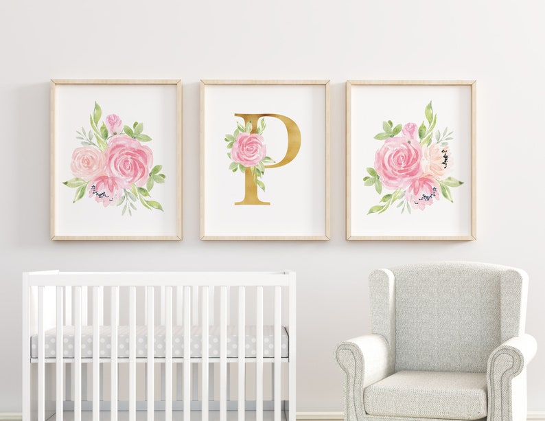 Baby Girl Pink Floral Nursery Decor Pink Gold Nursery Prints Etsy