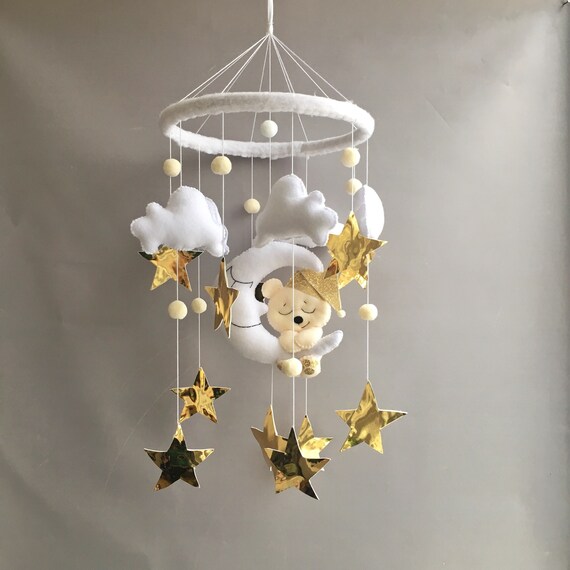 Gold Baby Mobile Bear Mobile Gold Nursery Decor Stars Mobile Etsy