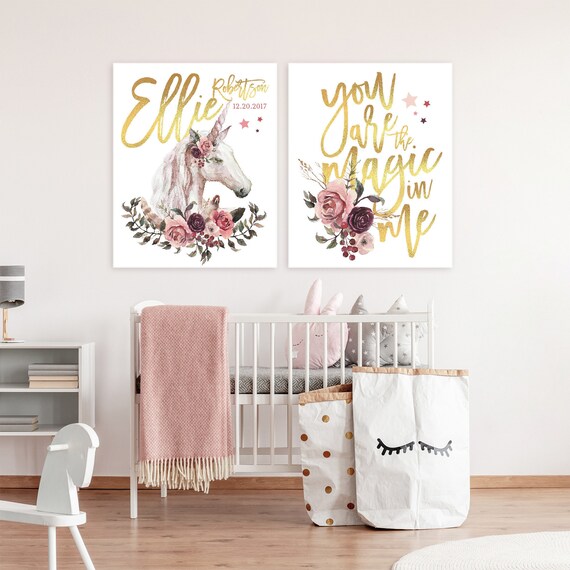 Watercolor Nursery Wall Art Pink And Gold Nursery Decor Baby Etsy