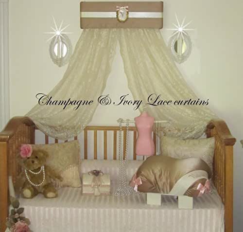 Amazon Com Champagne Ivory Gold Nursery Bed Canopy White Curtains