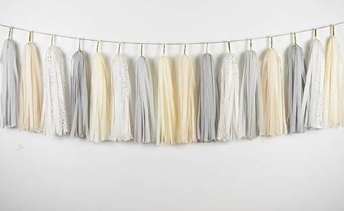 Amazon Com Grey Cream And Gold Speckles Tassel Garland Neutral